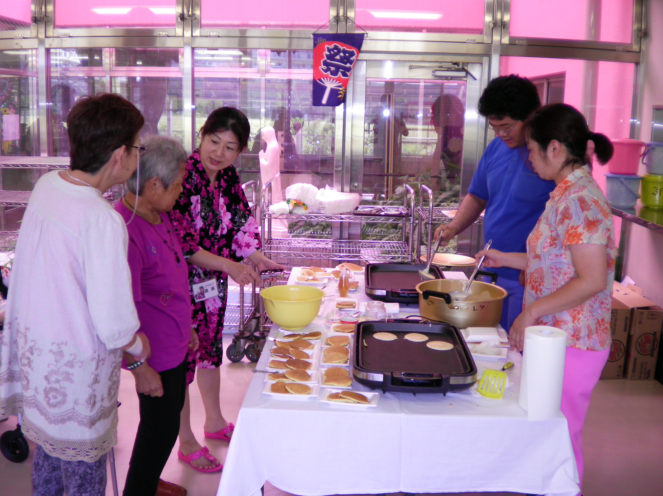 イベント情報 Top > イベント情報 > 夏祭りが行われました 夏祭りが行われました 2015年7月25日 本日、夏祭りが行われました。 高槻音頭、パンケーキ、ドリンク、かき氷、ゲームと、普段の生活とは違う雰囲気で、利用者さんの楽しそうなお顔が見られました!
