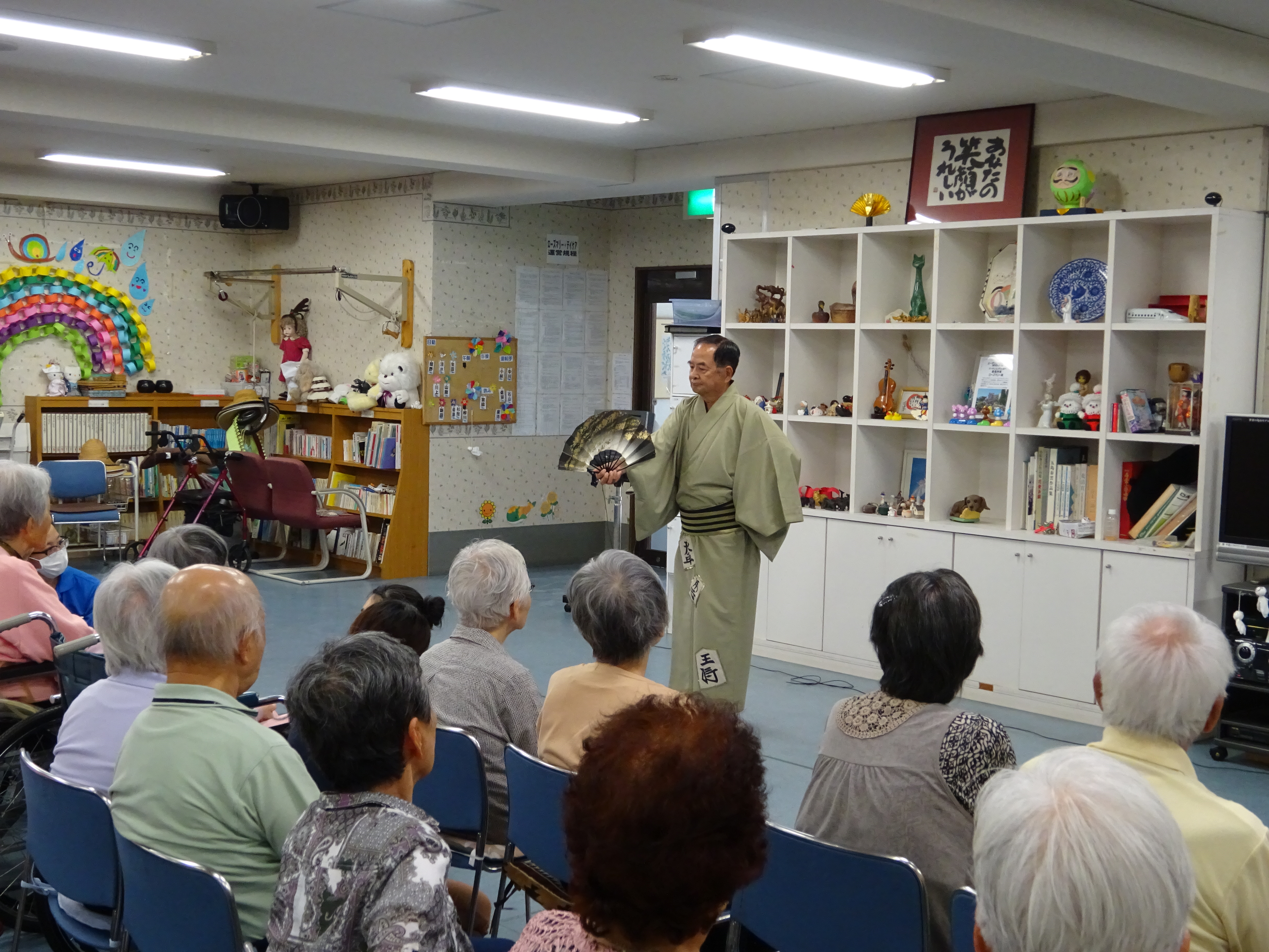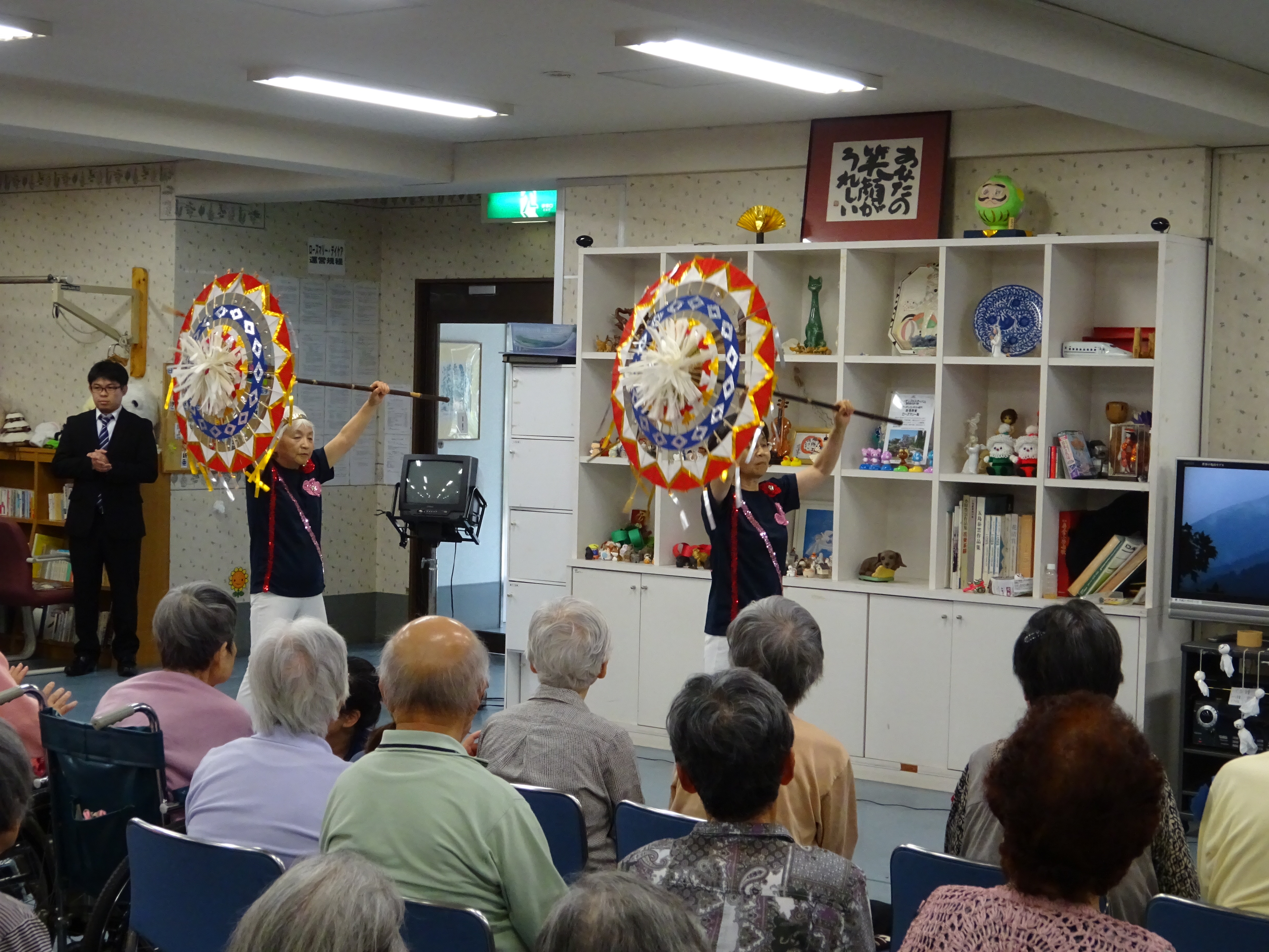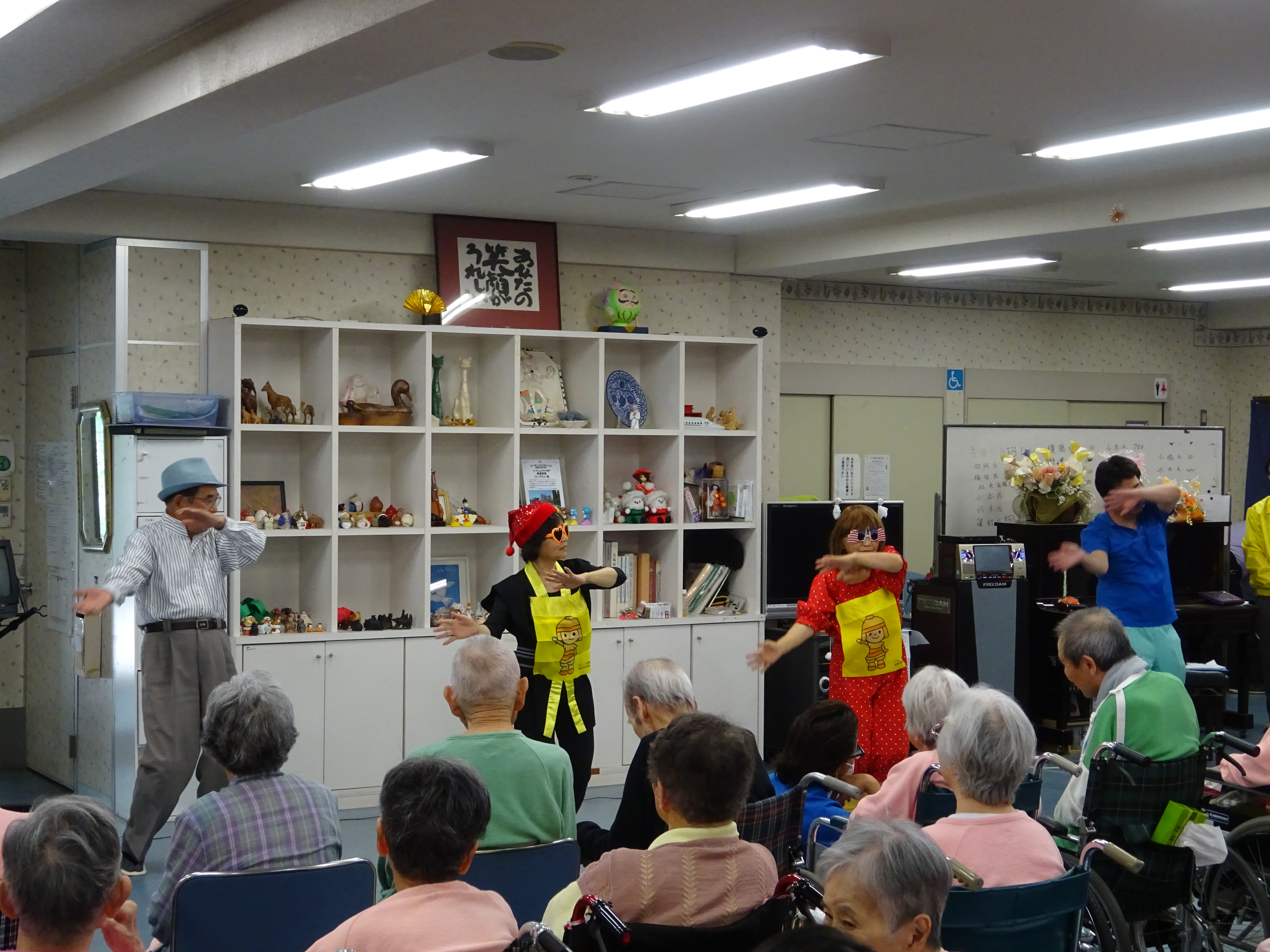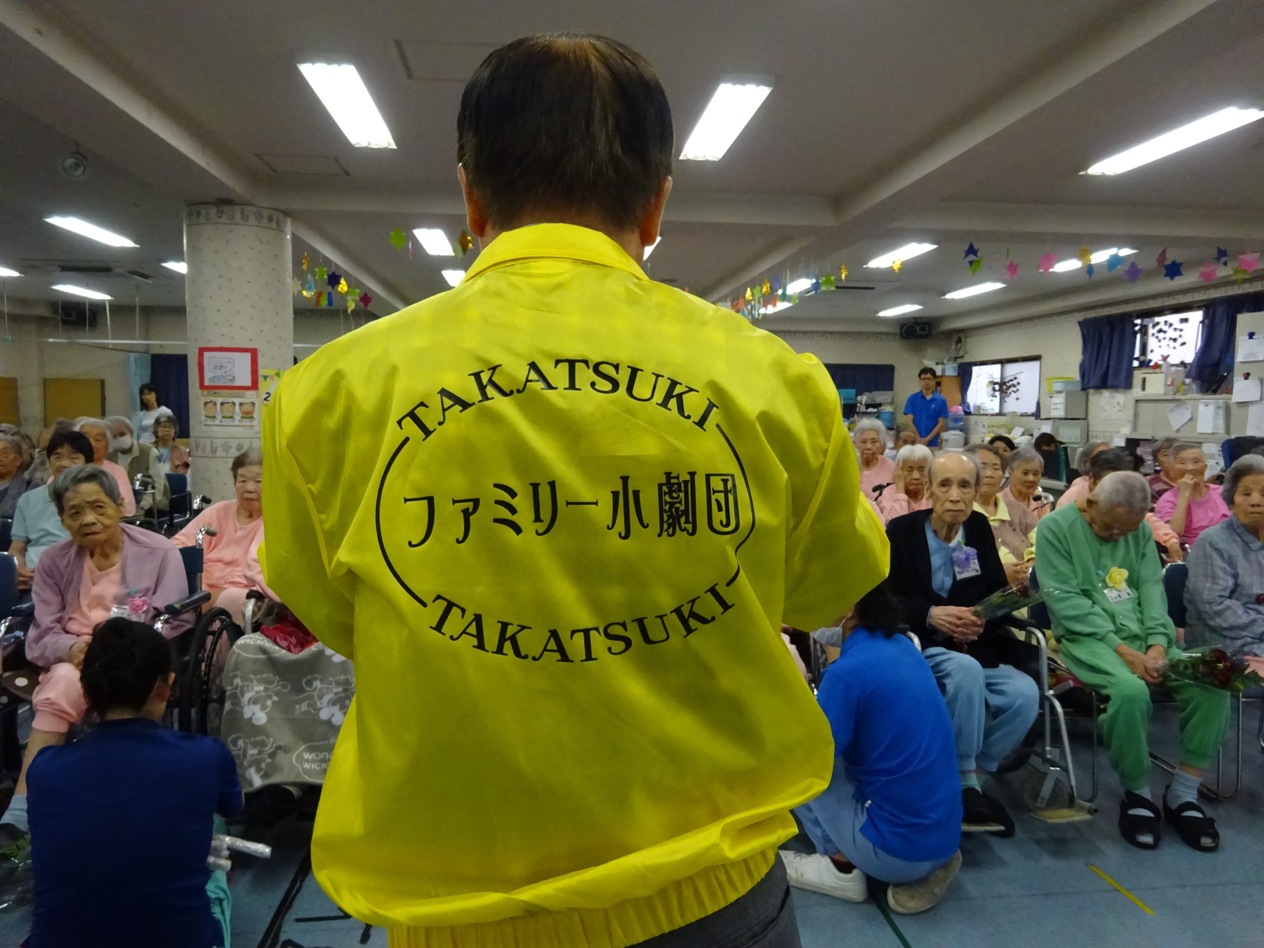 イベント情報 Top > イベント情報 > 5月6月お誕生会 5月6月お誕生会 2017年6月25日 6月24日 今日は5月6月生まれの方のお誕生会を行いました。皆さん、本当におめでとうございます!お誕生祝いのために『ファミリー小劇団 』の方々が、歌や踊りのプレゼントに来てくれました。演目の最後には高槻市民なら誰だも知っている「テケテケはにたんダンス」をスタッフも一緒に踊り、大いに盛り上がりました。お忙しい中、お越しいただきありがとうございました。