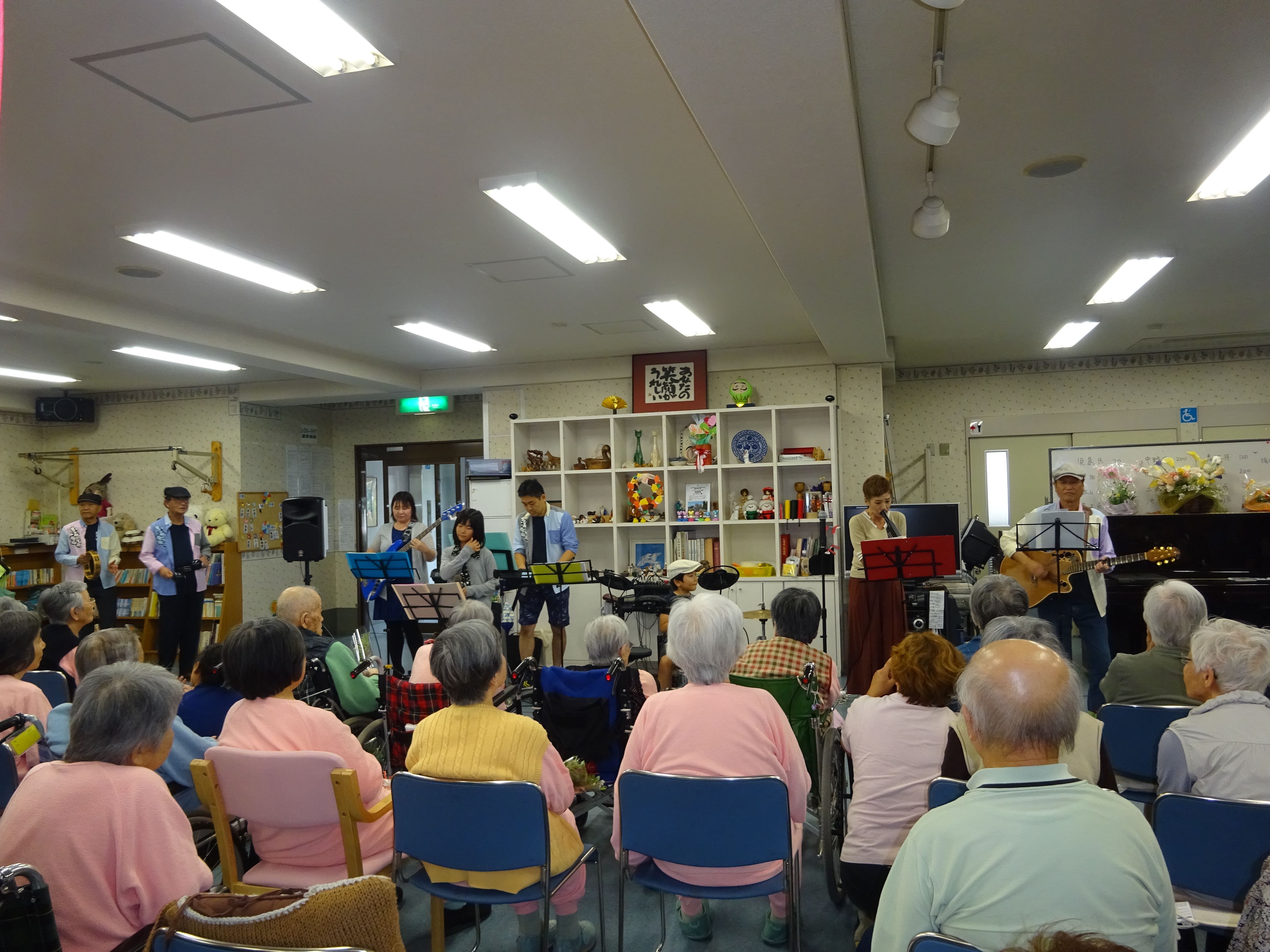 イベント情報 Top > イベント情報 > 9・10月お誕生会 9・10月お誕生会 2017年10月16日 10月14日 今日は9、10月生まれの方の、お誕生会を行いました。皆さん、本当におめでとうございます!お誕生祝いのために『ふるさとすいか団』の方々が、生演奏による歌のプレゼントに来てくださいました。小学生の男の子のドラム、そして、女の子が懐メロを熱唱。皆「かわいいネ」と言いながら、いっしょに歌っていました。とても楽しいお誕生会でした。ありがとうございました。
