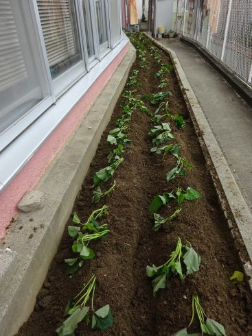 イベント情報 Top > イベント情報 > さつまいも さつまいも 2021年5月22日 施設の南側にある畑に、さつまいもの苗を植えつけました! ここはとても日当たりがよく、毎年たくさんのおいしいさつまいもが育ちます。 ちょうど梅雨の晴れ間に植えつけが出来ました。 今年も秋になったら、みんなで芋ほり&焼き芋パーティーをしましょう!