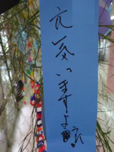 あいにくの雨となりましたが、みなさん思い思いに願い事を書いたり、飾り付けをしたりと、楽しまれました。