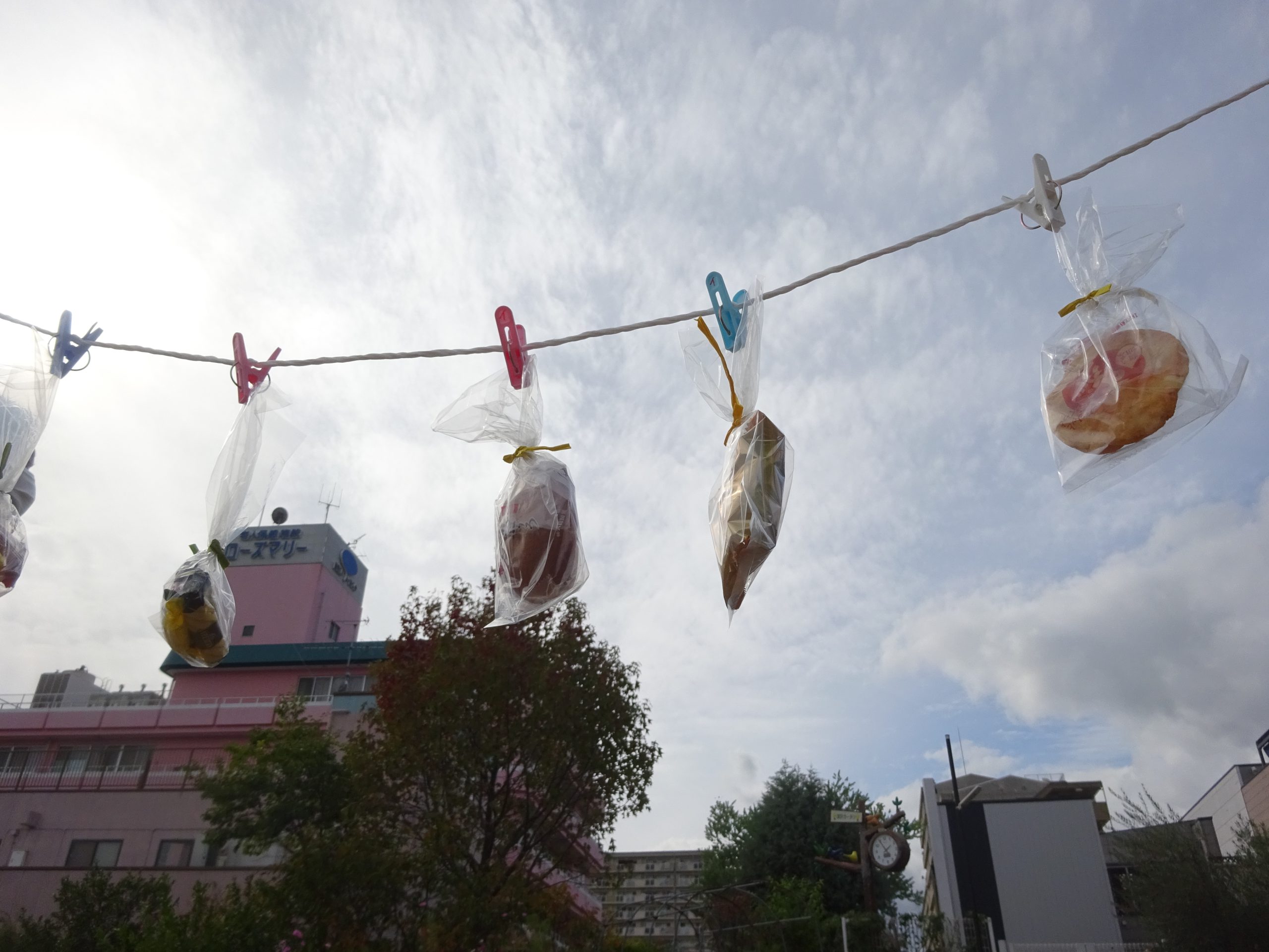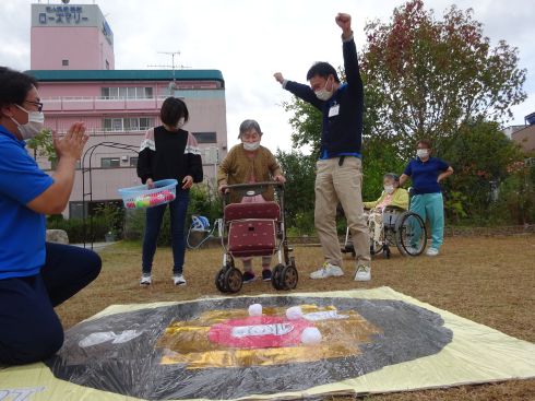 イベント情報 Top > イベント情報 > 運動会 運動会 2021年11月2日 今年はローズマリー祭の代わりに運動会!的あてや、宝探し、パン食い競争もどぎ(お菓子とり)でスタンプラリーをしました。みなさん屋外でのびのび体を動かし、笑顔があふれていました! 宝探し会場