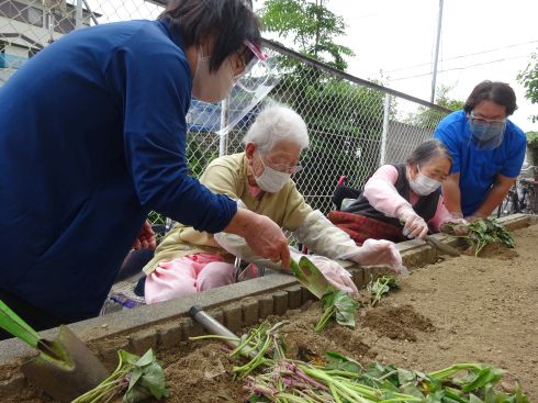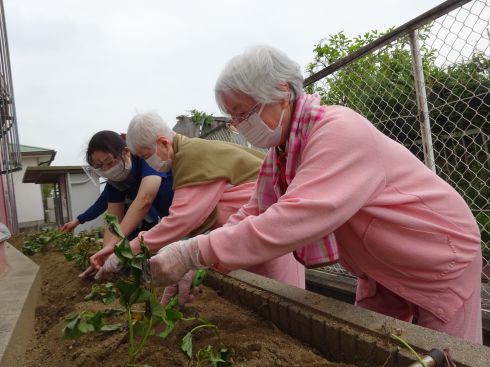 イベント情報 Top > イベント情報 > さつまいもの苗を植えました さつまいもの苗を植えました 2022年5月21日 施設の南側にある畑に、さつまいもの苗を植えました。ここはとても日当たりがよく、いつもおいしいさつまいもが育ちます。曇り空ではありましたが、ちょうど爽やかな気候で外に出るにはぴったりでした!今年の秋はみんなでいもほり&焼きいもパーティー! 楽しみですね!