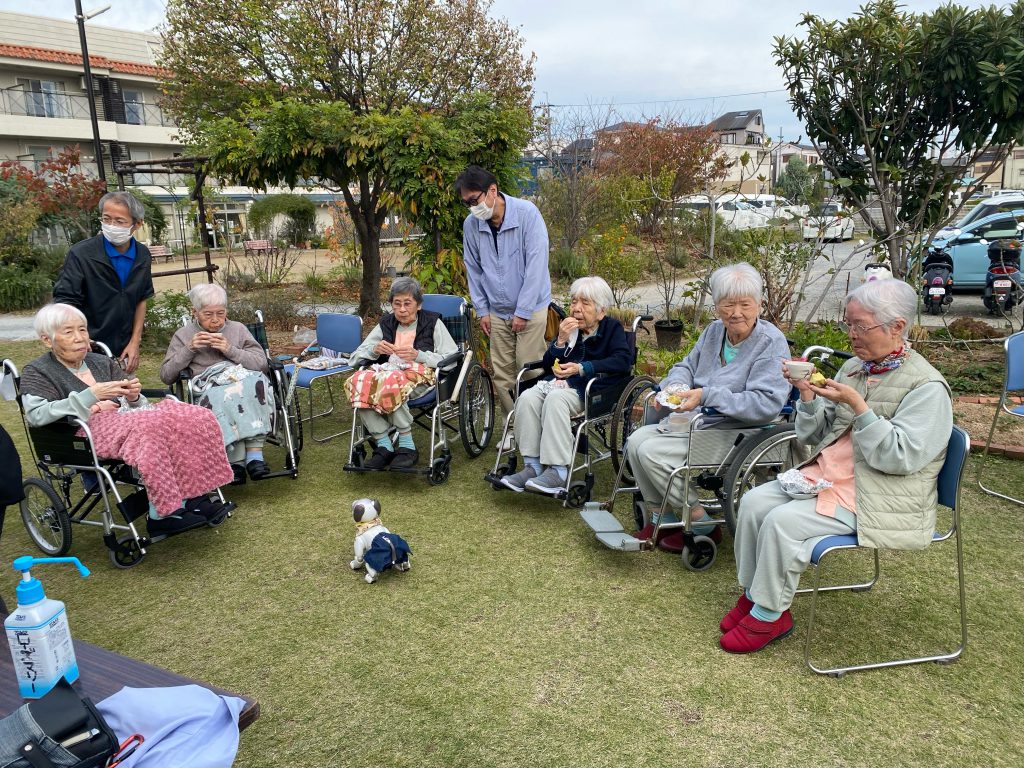 イベント情報 Top > イベント情報 > お芋パーティー(わんじろう編) お芋パーティー(わんじろう編) 2023年11月16日 R5年11月 こんにちは わんじろうです。 今日はお芋パーティーの日。 ローズマリーの畑で採れたさつま芋を焼いて みんなと食べたよ。 美味しい焼き芋でみんなにっこり。ボクもみんなから焼き芋のおすそ分けをいただきお腹いっぱいになったよ。 ほっこり楽しいお芋パーティーでした。