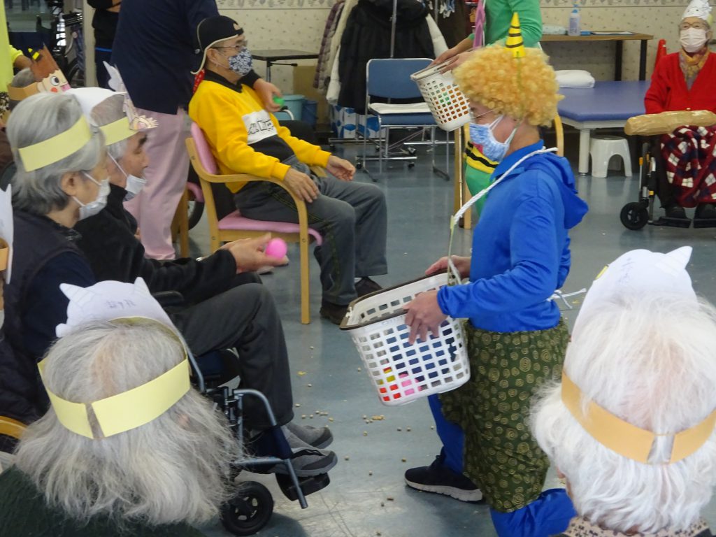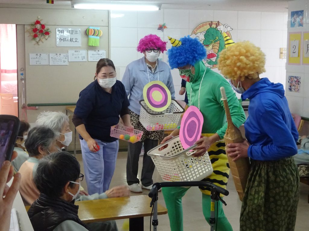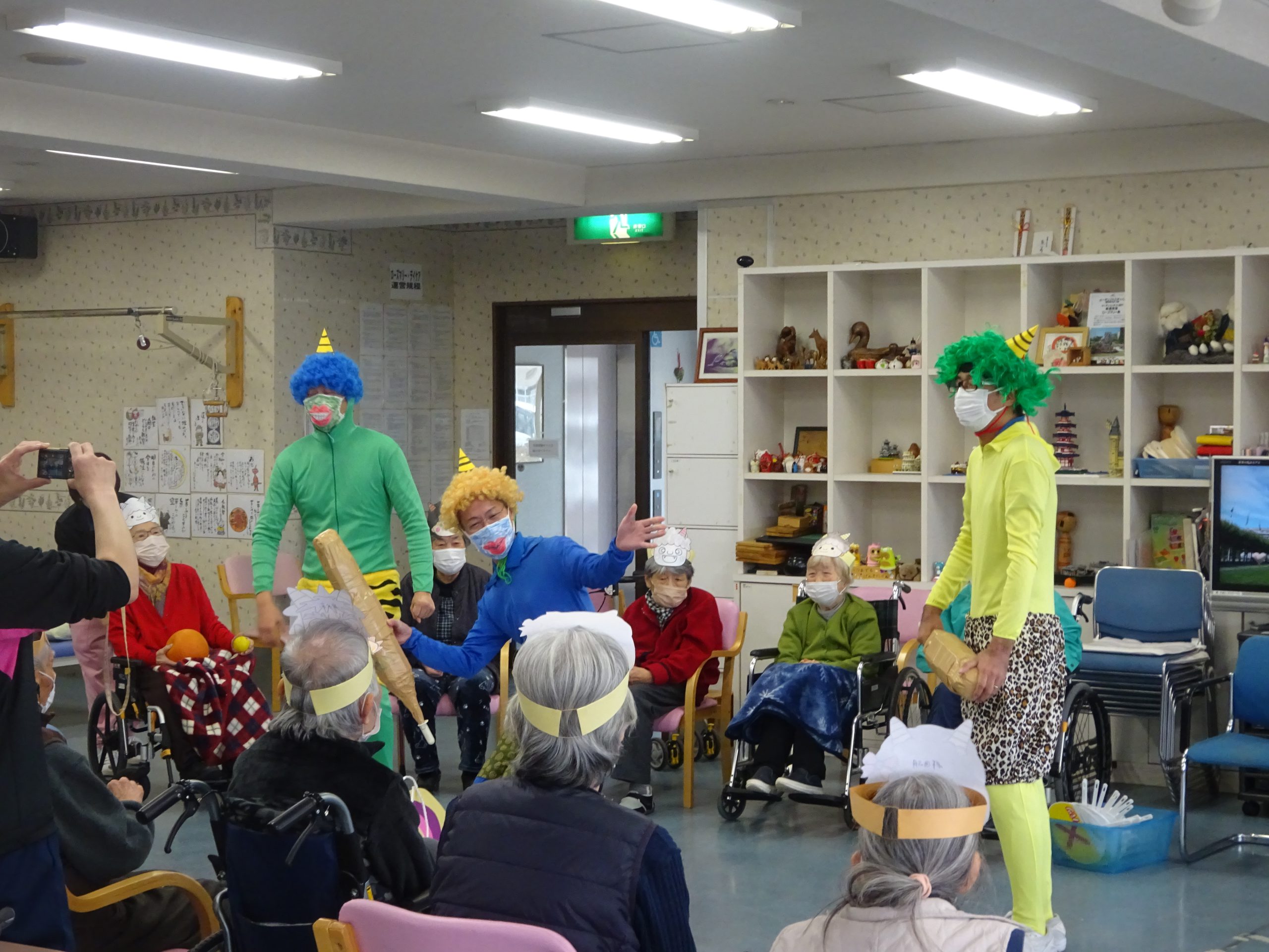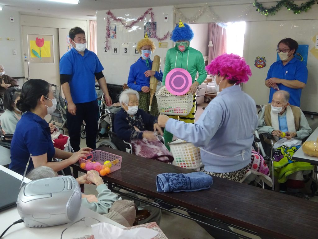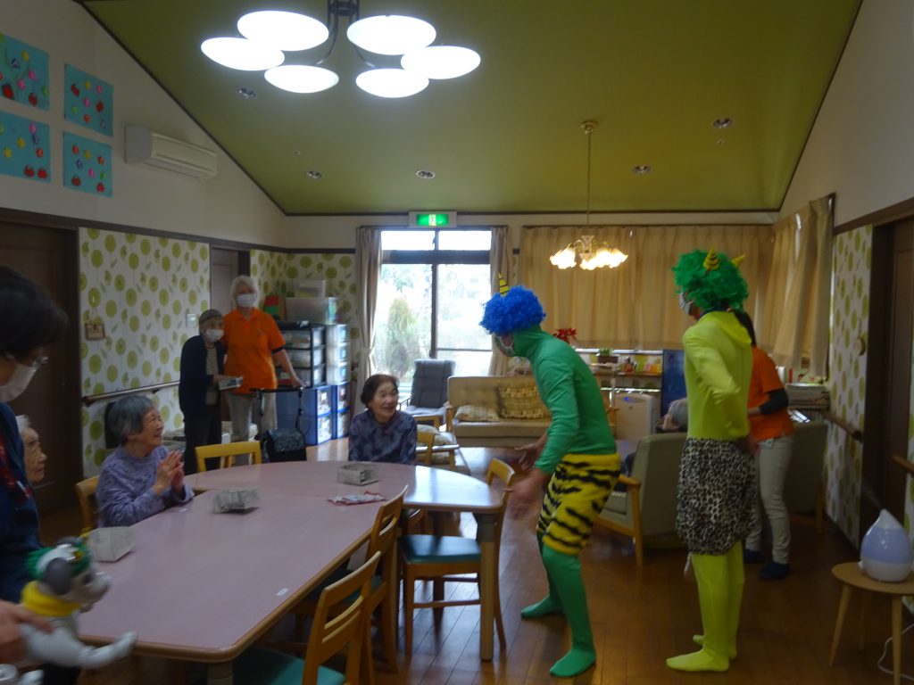 スタッフが鬼に扮して、デイケア・グループホーム・各フロアを訪問…