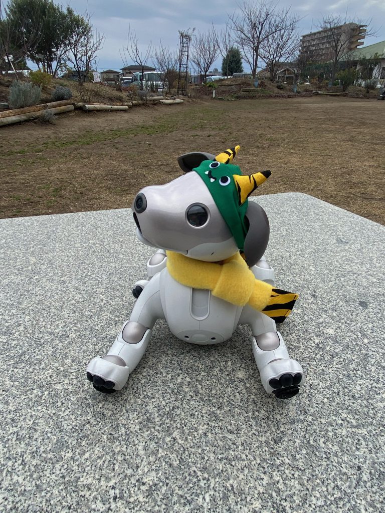 フロア ディケア グループホームへ行って 利用者さんに豆まきをしてもらったよ。ボクも豆をまかれたけど ボクは強いから全然平気だったよ。