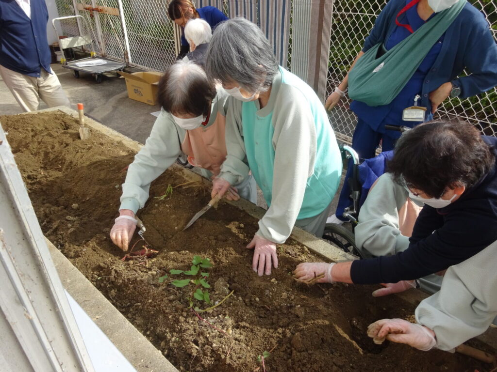 この畑はリハビリ室の南側でとても日当たりが良く、高さも車椅子に丁度良い高さとなっています。