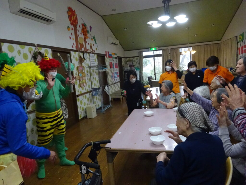 スタッフブログ Top > スタッフブログ > 👹本日は節分!豆まきで鬼退治だ~!!👹 👹本日は節分!豆まきで鬼退治だ~!!👹 2026年2月3日 今日は節分のイベントで、各フロアに鬼たちが登場! みなさん、「鬼は外~!福は内~!」の元気な掛け声とともに豆まきをしました。 グループホームは豆まきの戦いの前に、何故か記念撮影📸✨(笑) 今年もみなさんに、たくさんの福が来ますように!!