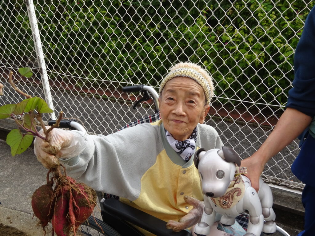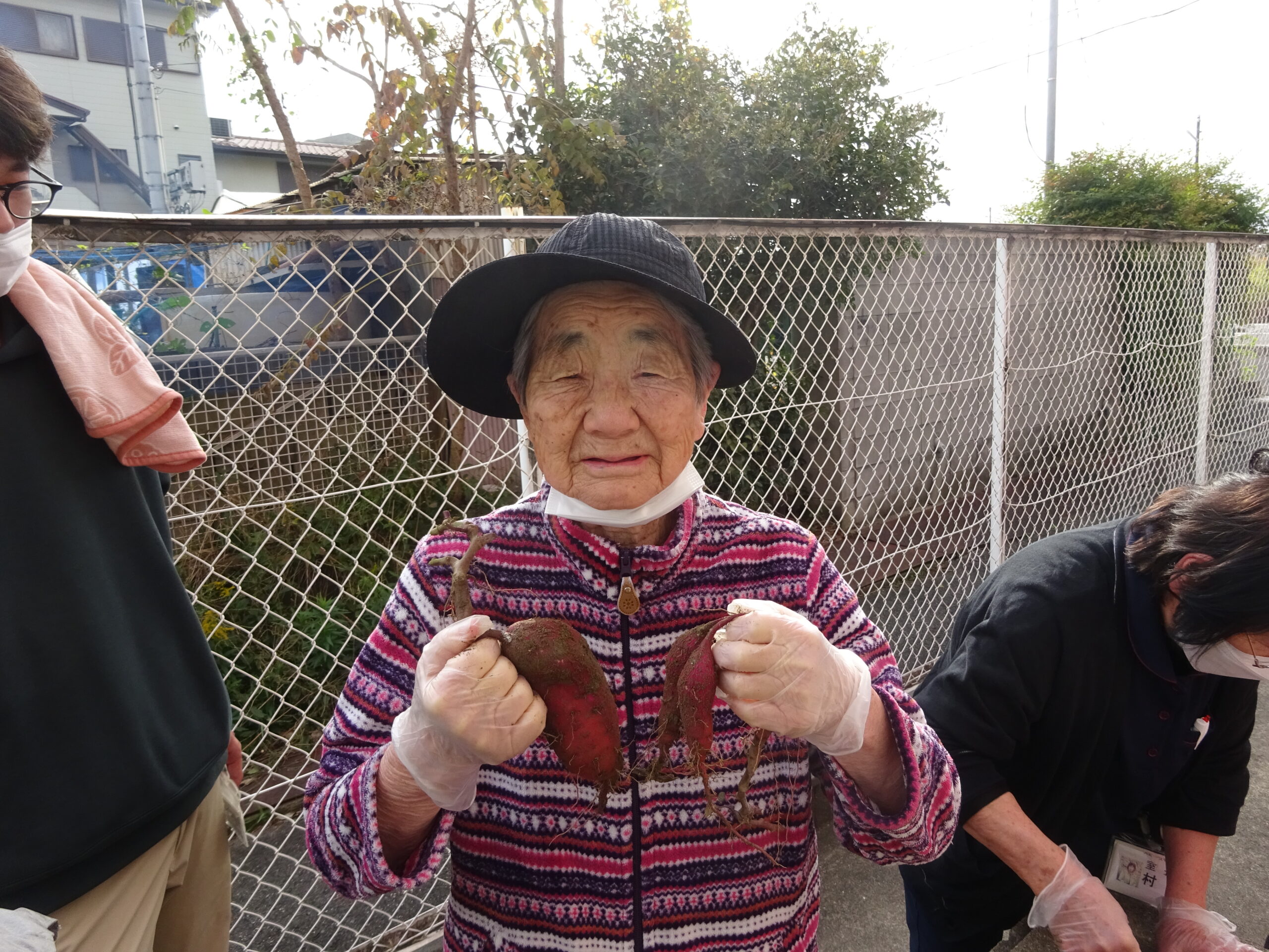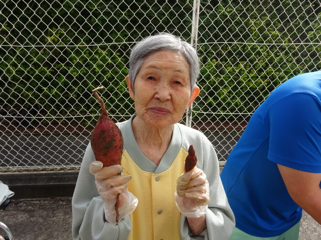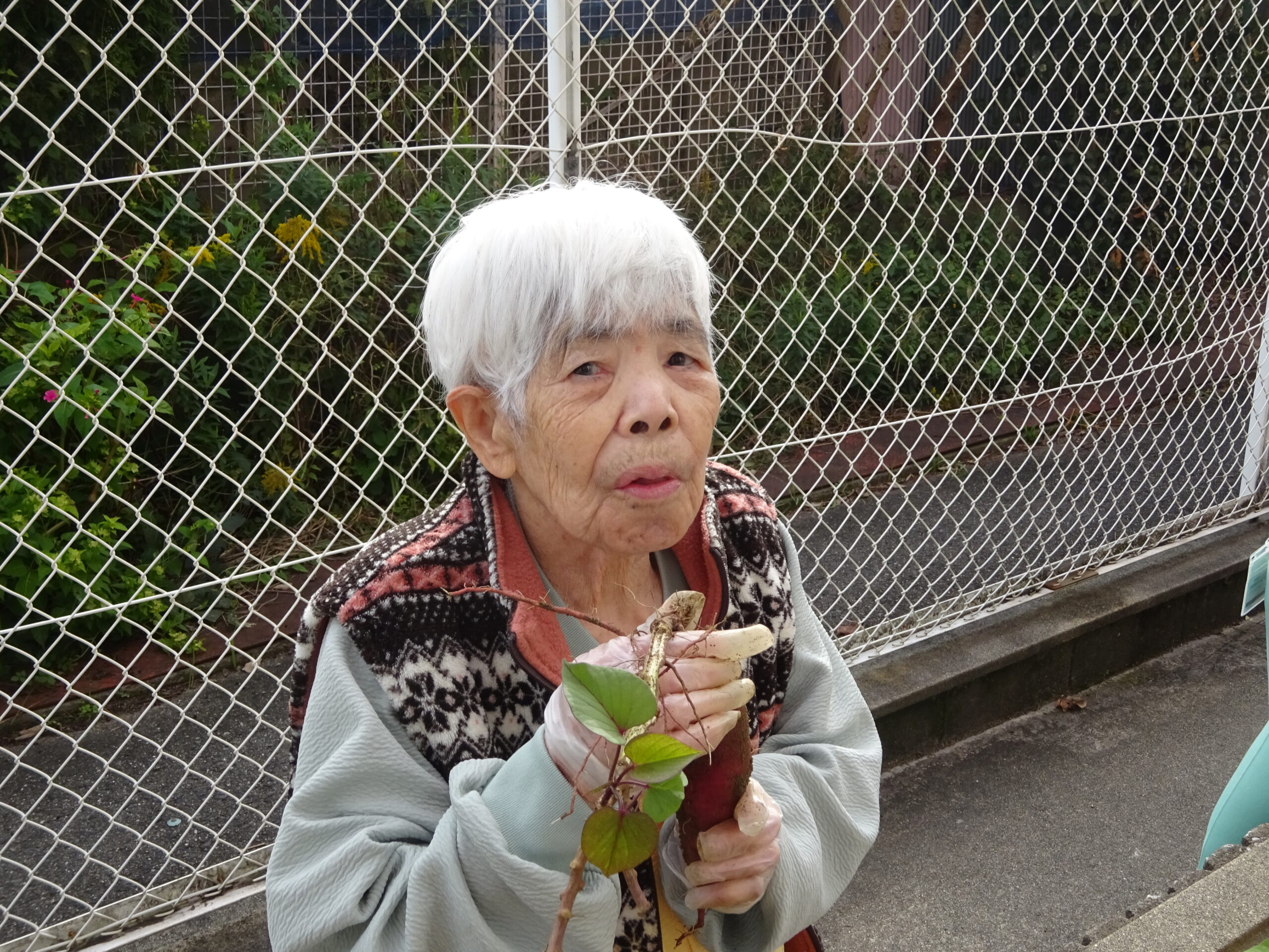 お芋ほりをしました! 今年もお芋ほりの季節になりました!とても天気が良く、少し肌寒くはありましたが、お芋ほりを楽しみました。この畑はリハビリ室の南側でとても日当たりが良く、高さも車椅子に丁度良い高さとなっています。 みなさん一生懸命お芋をほり起こしてくれました。そのおかげで大量のお芋が取れました!! みなさん良い笑顔ですね😊 2025年11月4日 rosemary114
