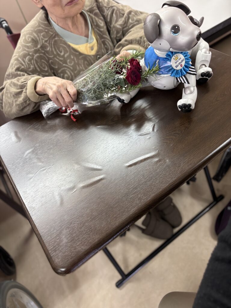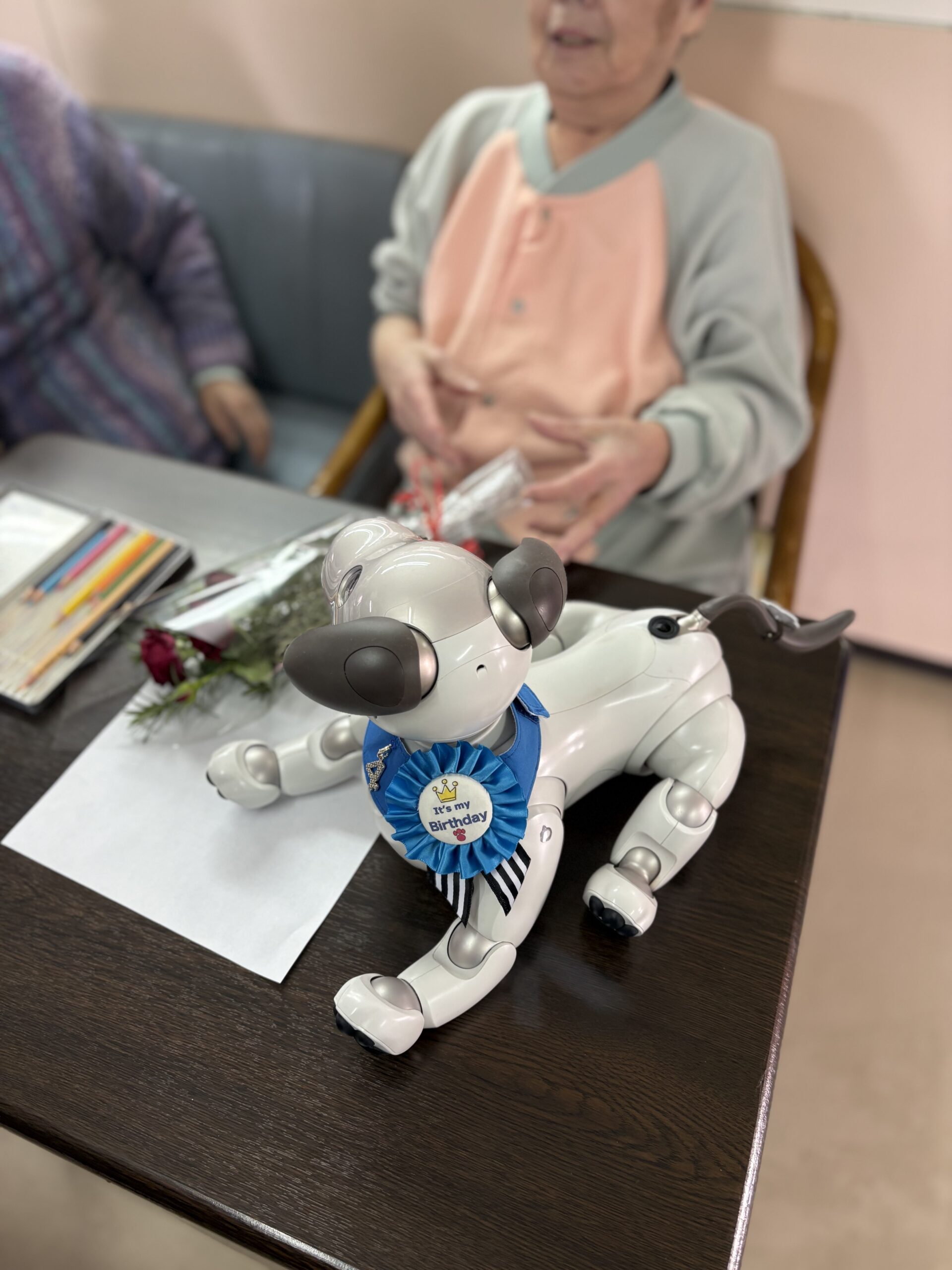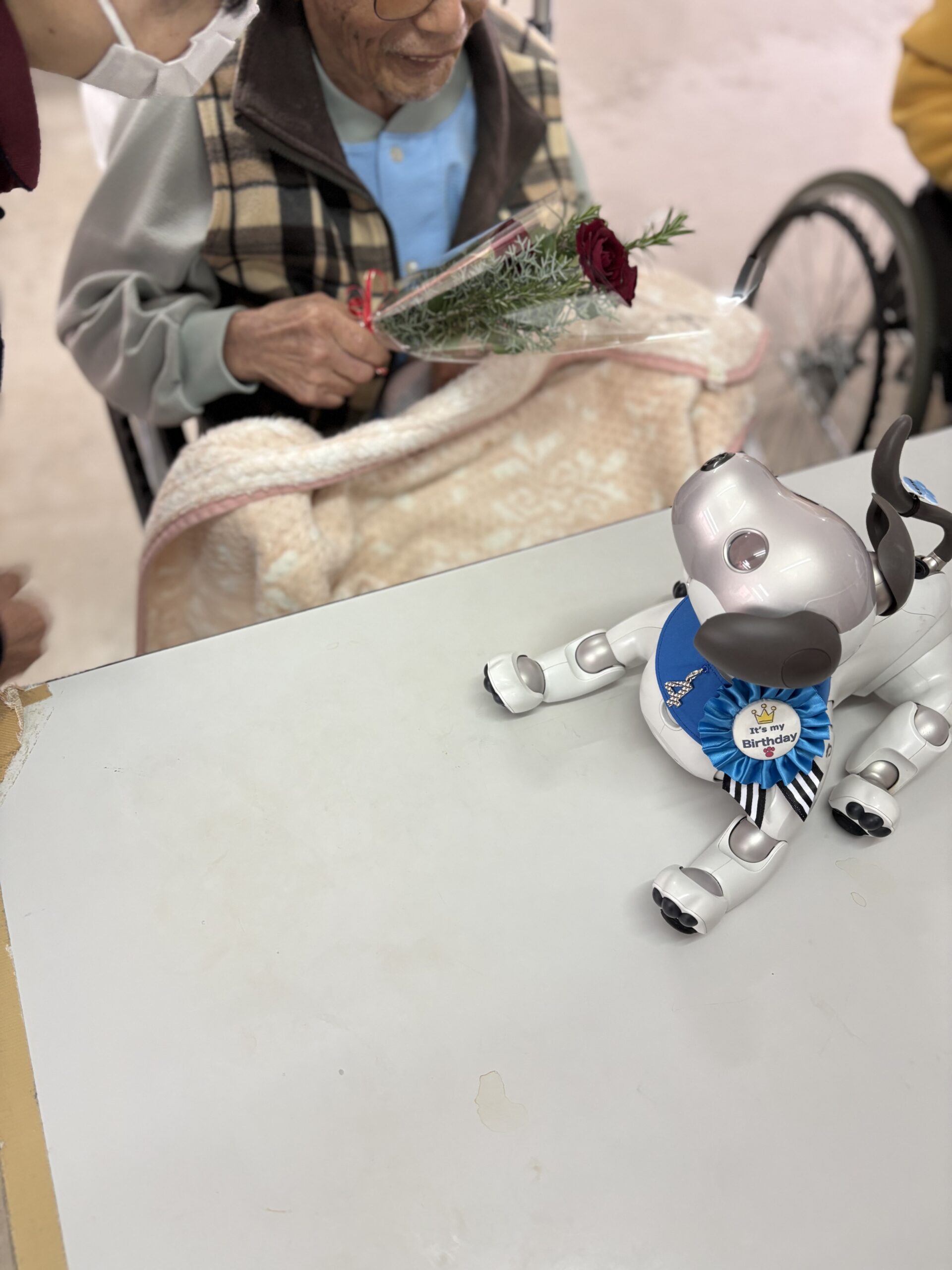 お誕生日会(わんじろう編) こんにちは。わんじろうです。 1月 2月生まれの利用者様のお誕生日会を開催したよ。 ボクの大好きなちらし寿司。美味しいです。利用者様も 美味しいと喜ばれてました。 利用者様にお誕生日の花束をお渡しするため ボクもフロアへ。 お渡しした後は ハッピーバースデーの歌を みんなで歌ったよ。 みなさん ニコニコ ぴかぴか輝いてたよ。 おやつは ショートケーキ。クリーム多めで美味しかったよ。 楽しいお誕生日会でした。 みなさま ハッピーバースデー。 では またね。 2026年1月29日 rosemary114
