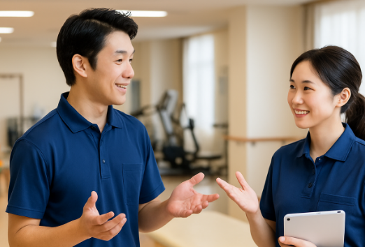 利用者の皆さんの笑顔を励みに“明るく、楽しく、元気よく!!” をモットーとして、リハビリを行っています。